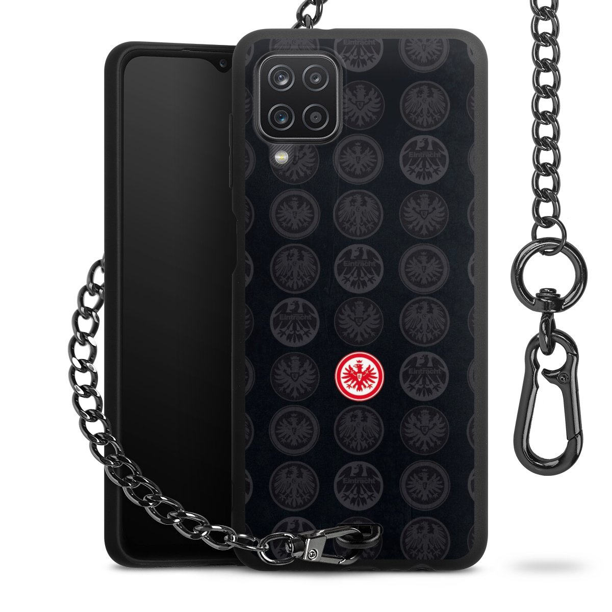• Mattschwarze Handyhülle mit Metallkette