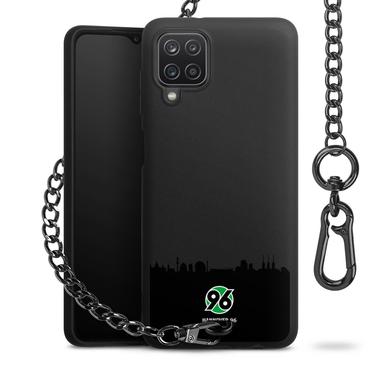 Die mattschwarze Silikon-Handyhülle besteht aus robustem TPU (thermoplastisches Polyurethan). Sie ist flexibel und schützt Dein Smartphone vor Stößen und Kratzern. Die Kette sowie der Karabinerhaken sind aus Metall in Gunmetal-Optik gefertigt. Für dieses Produkt kommen ausschließlich TÜV-geprüfte Materialien zum Einsatz.