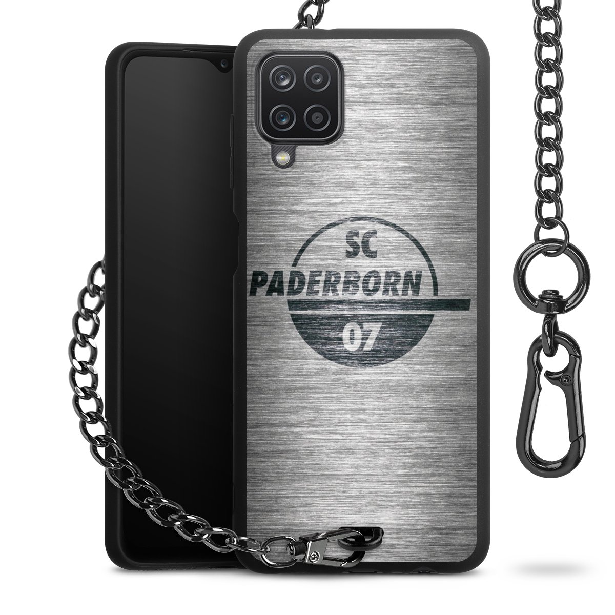 Die mattschwarze Silikon-Handyhülle besteht aus robustem TPU (thermoplastisches Polyurethan). Sie ist flexibel und schützt Dein Smartphone vor Stößen und Kratzern. Die Kette sowie der Karabinerhaken sind aus Metall in Gunmetal-Optik gefertigt. Für dieses Produkt kommen ausschließlich TÜV-geprüfte Materialien zum Einsatz.