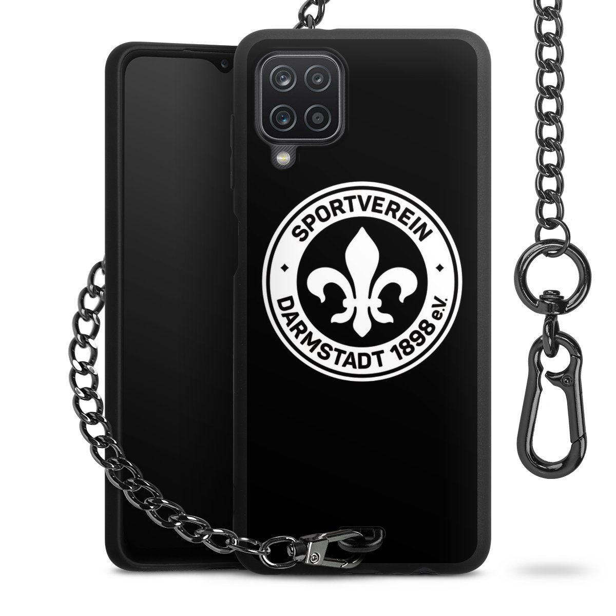 Die mattschwarze Silikon-Handyhülle besteht aus robustem TPU (thermoplastisches Polyurethan). Sie ist flexibel und schützt Dein Smartphone vor Stößen und Kratzern. Die Kette sowie der Karabinerhaken sind aus Metall in Gunmetal-Optik gefertigt. Für dieses Produkt kommen ausschließlich TÜV-geprüfte Materialien zum Einsatz.