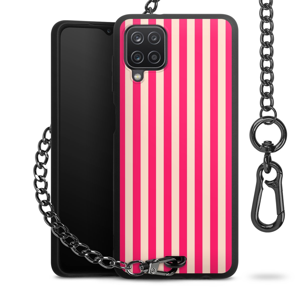 Die mattschwarze Silikon-Handyhülle besteht aus robustem TPU (thermoplastisches Polyurethan). Sie ist flexibel und schützt Dein Smartphone vor Stößen und Kratzern. Die Kette sowie der Karabinerhaken sind aus Metall in Gunmetal-Optik gefertigt. Für dieses Produkt kommen ausschließlich TÜV-geprüfte Materialien zum Einsatz.