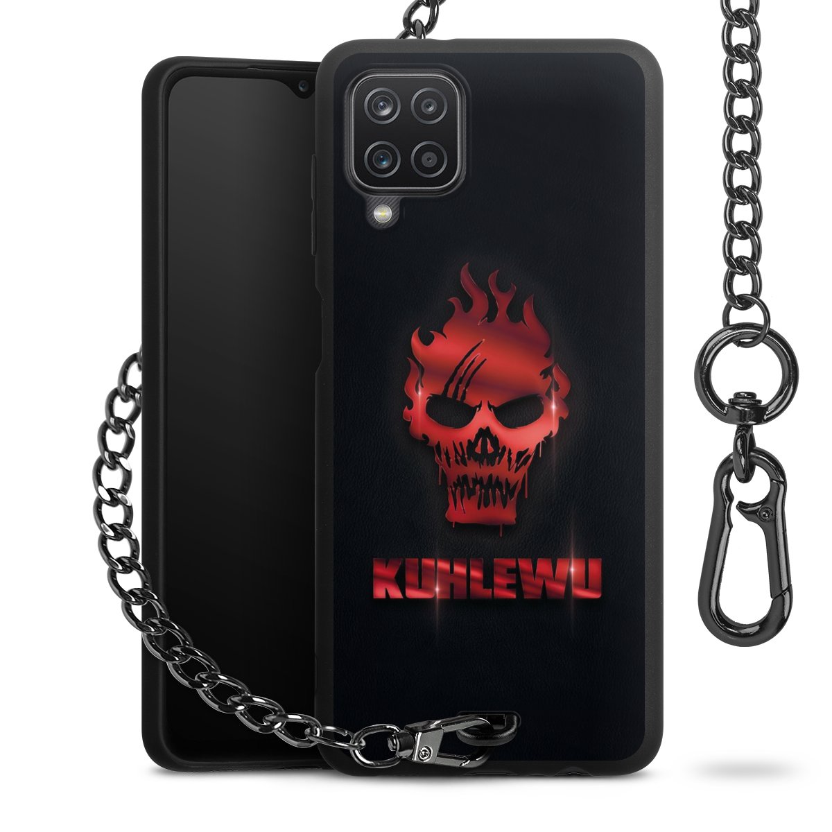Die mattschwarze Silikon-Handyhülle besteht aus robustem TPU (thermoplastisches Polyurethan). Sie ist flexibel und schützt Dein Smartphone vor Stößen und Kratzern. Die Kette sowie der Karabinerhaken sind aus Metall in Gunmetal-Optik gefertigt. Für dieses Produkt kommen ausschließlich TÜV-geprüfte Materialien zum Einsatz.