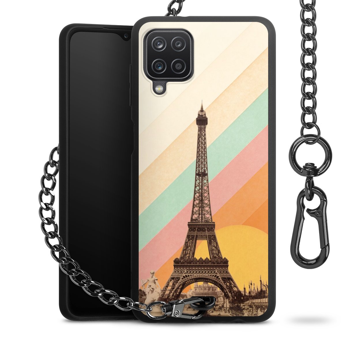 Die mattschwarze Silikon-Handyhülle besteht aus robustem TPU (thermoplastisches Polyurethan). Sie ist flexibel und schützt Dein Smartphone vor Stößen und Kratzern. Die Kette sowie der Karabinerhaken sind aus Metall in Gunmetal-Optik gefertigt. Für dieses Produkt kommen ausschließlich TÜV-geprüfte Materialien zum Einsatz.