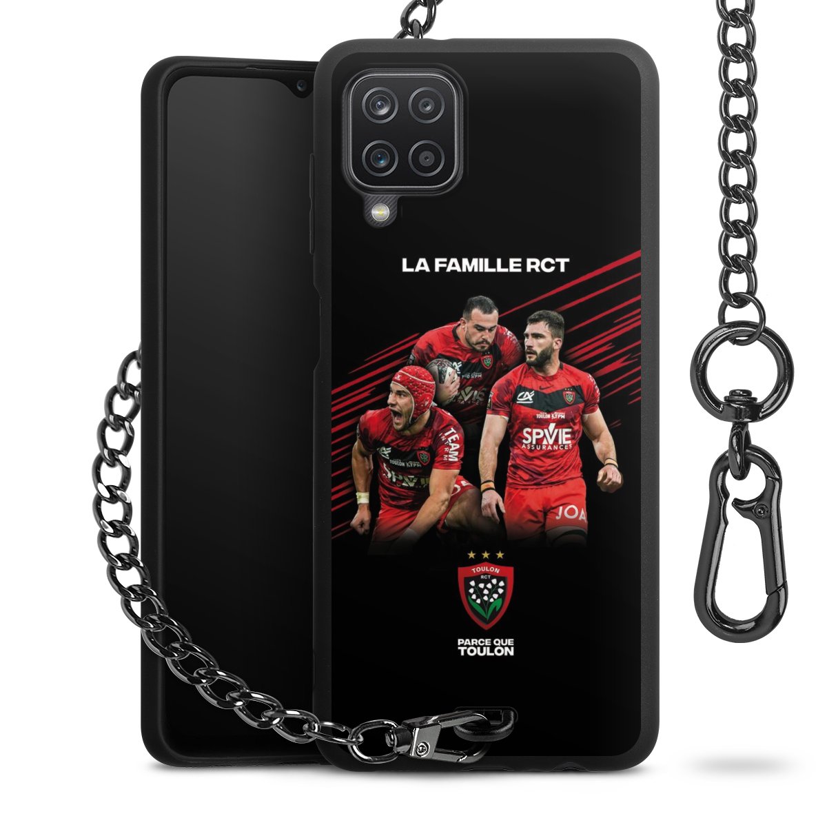 • Mattschwarze Handyhülle mit Metallkette