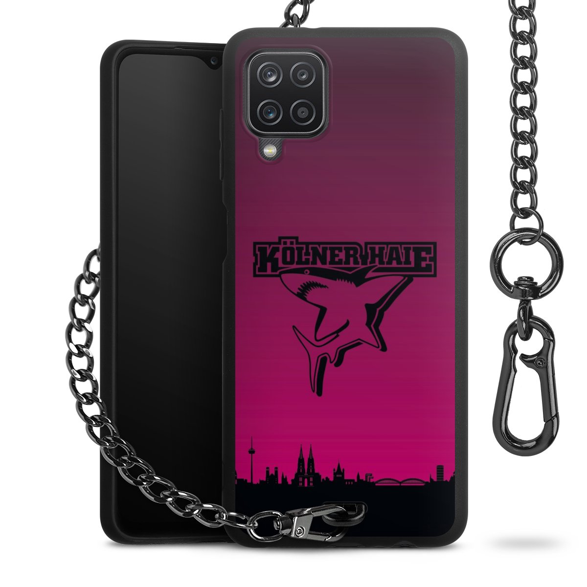 Die mattschwarze Silikon-Handyhülle besteht aus robustem TPU (thermoplastisches Polyurethan). Sie ist flexibel und schützt Dein Smartphone vor Stößen und Kratzern. Die Kette sowie der Karabinerhaken sind aus Metall in Gunmetal-Optik gefertigt. Für dieses Produkt kommen ausschließlich TÜV-geprüfte Materialien zum Einsatz.
