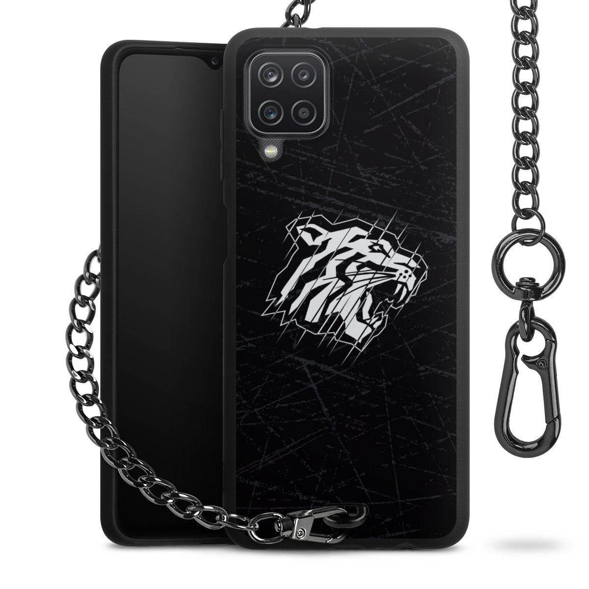 Die mattschwarze Silikon-Handyhülle besteht aus robustem TPU (thermoplastisches Polyurethan). Sie ist flexibel und schützt Dein Smartphone vor Stößen und Kratzern. Die Kette sowie der Karabinerhaken sind aus Metall in Gunmetal-Optik gefertigt. Für dieses Produkt kommen ausschließlich TÜV-geprüfte Materialien zum Einsatz.