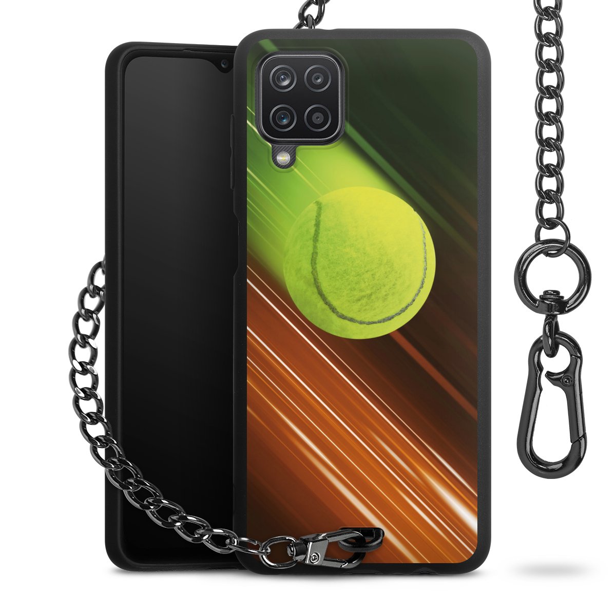 - Mattschwarze Handyhülle mit Metallkette