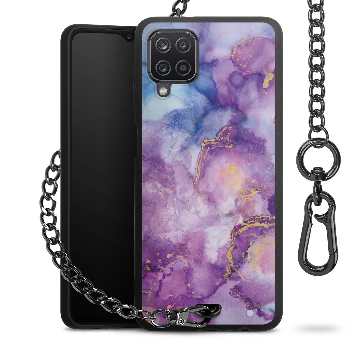Die mattschwarze Silikon-Handyhülle besteht aus robustem TPU (thermoplastisches Polyurethan). Sie ist flexibel und schützt Dein Smartphone vor Stößen und Kratzern. Die Kette sowie der Karabinerhaken sind aus Metall in Gunmetal-Optik gefertigt. Für dieses Produkt kommen ausschließlich TÜV-geprüfte Materialien zum Einsatz.