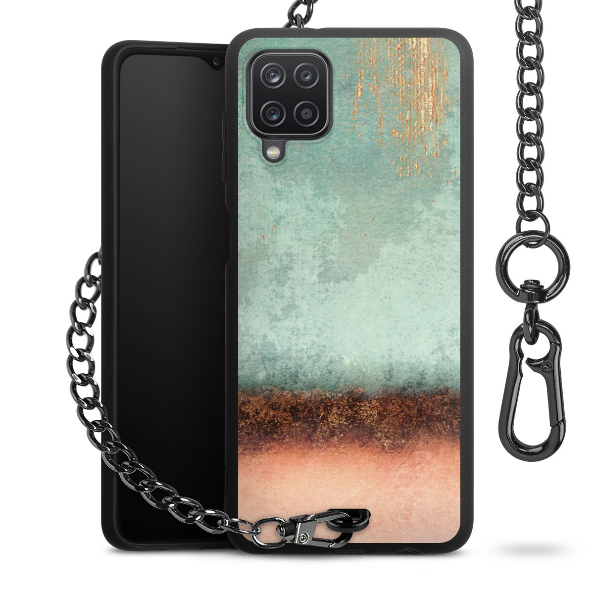 • Mattschwarze Handyhülle mit Metallkette