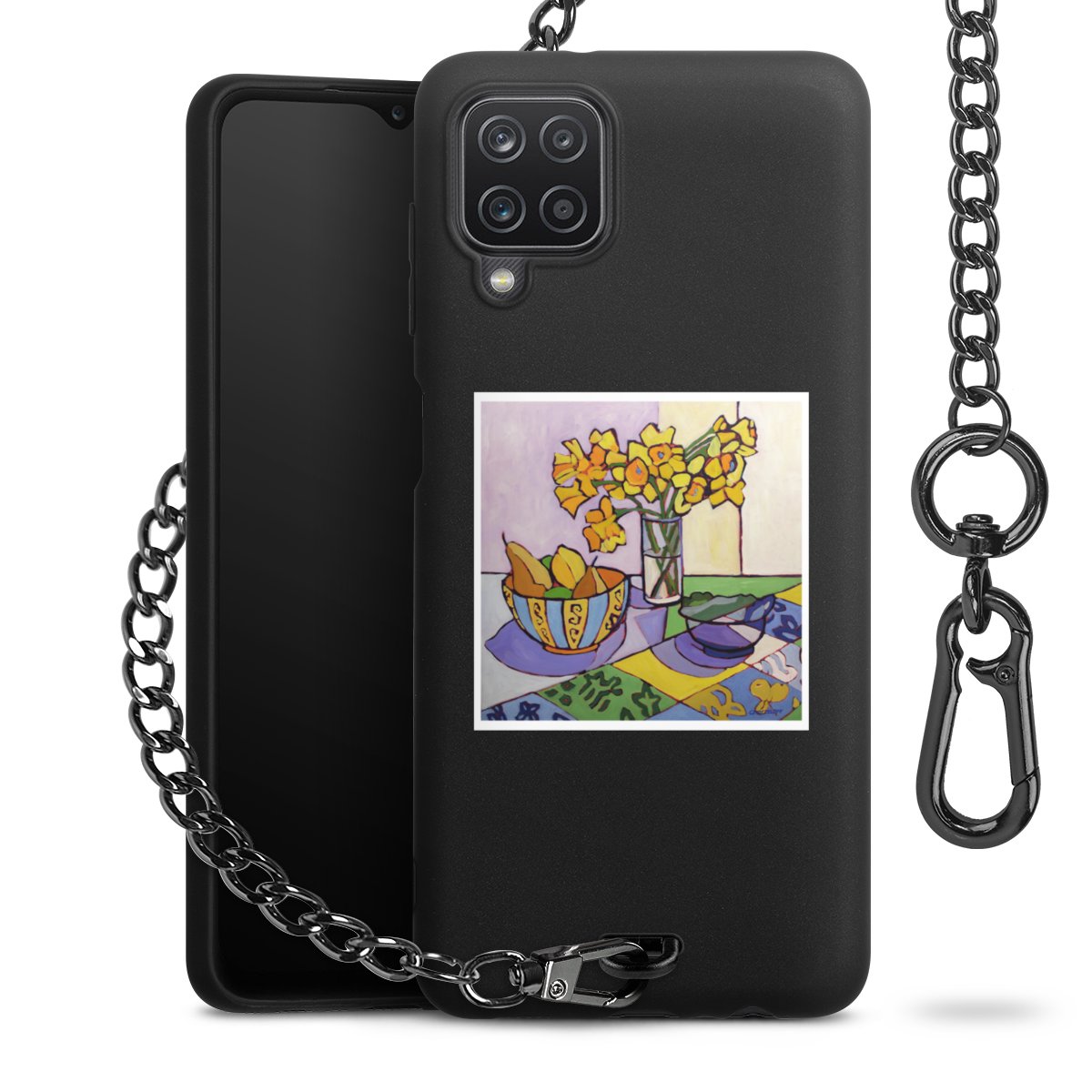 - Mattschwarze Handyhülle mit Metallkette
