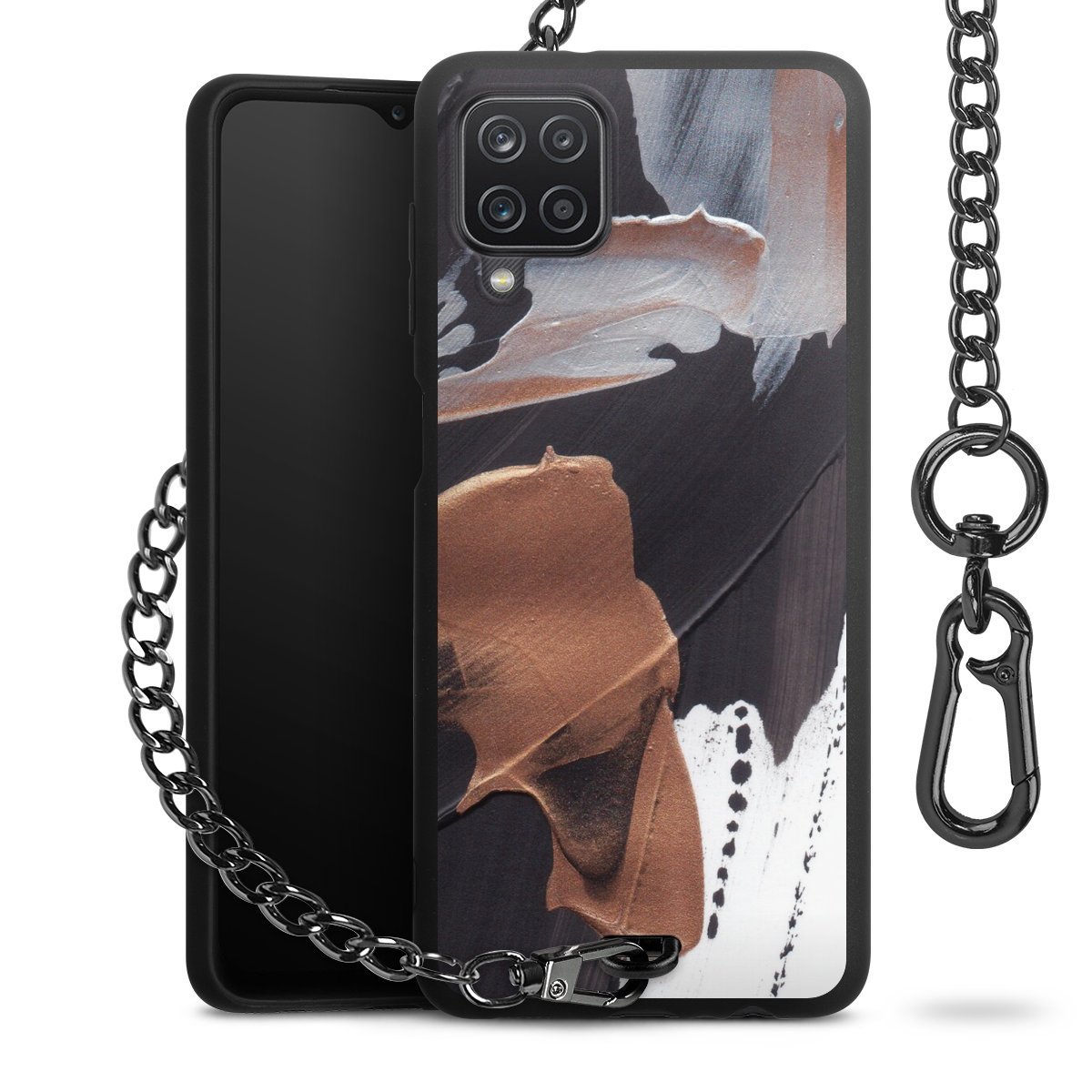 • Mattschwarze Handyhülle mit Metallkette