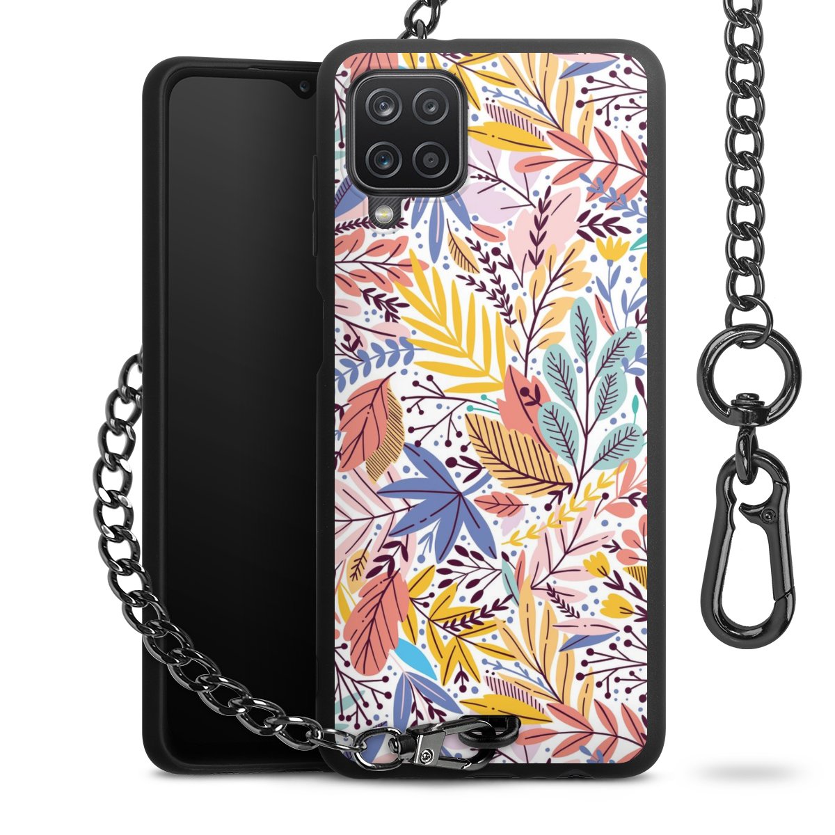 • Mattschwarze Handyhülle mit Metallkette