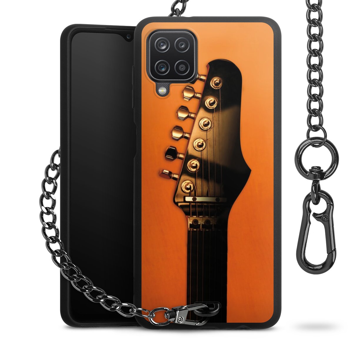 Die mattschwarze Silikon-Handyhülle besteht aus robustem TPU (thermoplastisches Polyurethan). Sie ist flexibel und schützt Dein Smartphone vor Stößen und Kratzern. Die Kette sowie der Karabinerhaken sind aus Metall in Gunmetal-Optik gefertigt. Für dieses Produkt kommen ausschließlich TÜV-geprüfte Materialien zum Einsatz.