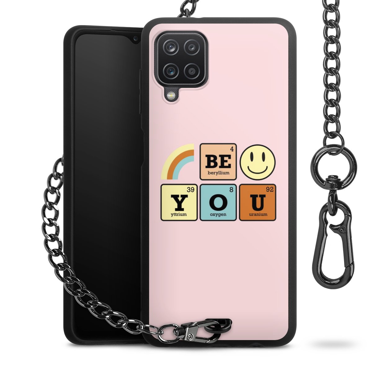 Die mattschwarze Silikon-Handyhülle besteht aus robustem TPU (thermoplastisches Polyurethan). Sie ist flexibel und schützt Dein Smartphone vor Stößen und Kratzern. Die Kette sowie der Karabinerhaken sind aus Metall in Gunmetal-Optik gefertigt. Für dieses Produkt kommen ausschließlich TÜV-geprüfte Materialien zum Einsatz.