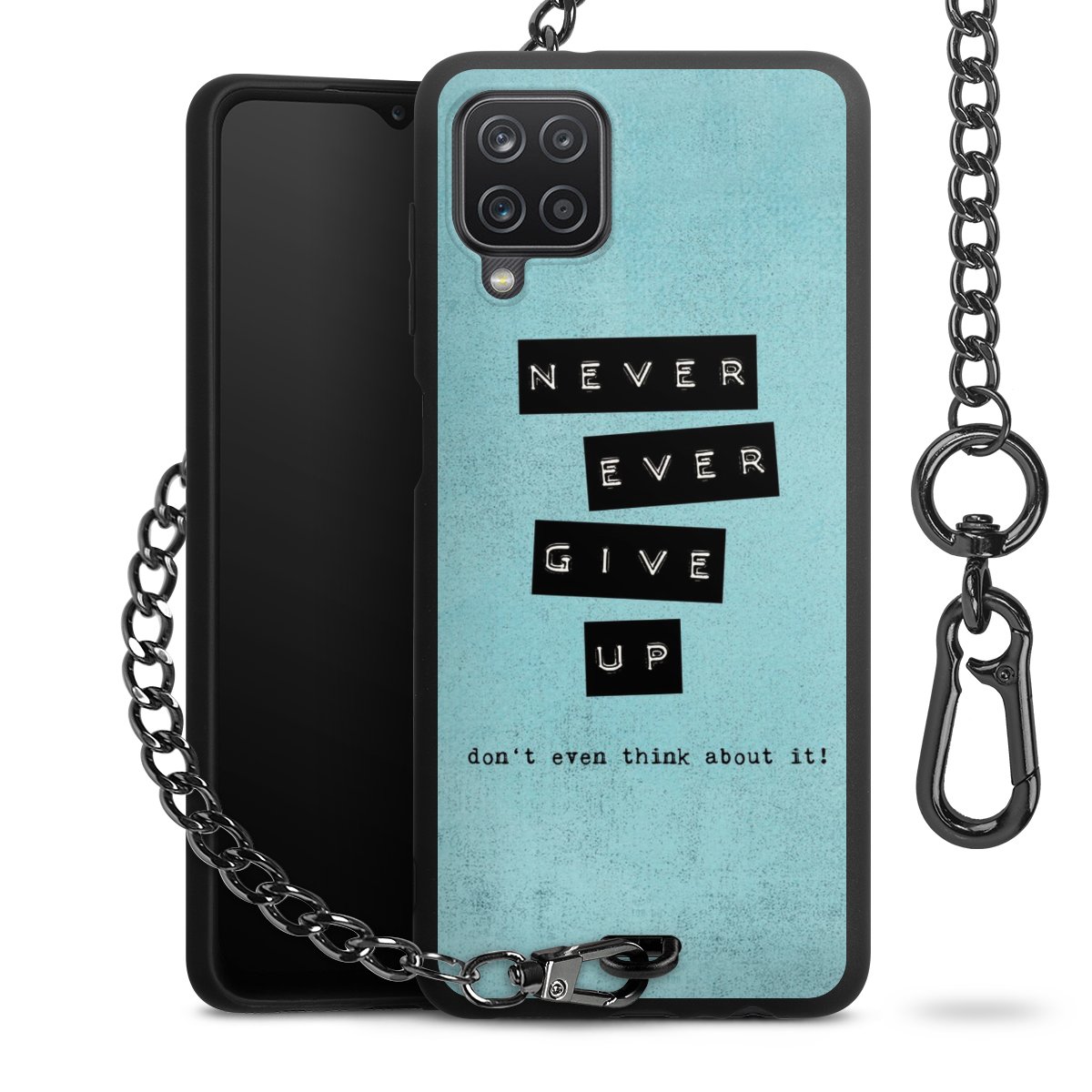 Die mattschwarze Silikon-Handyhülle besteht aus robustem TPU (thermoplastisches Polyurethan). Sie ist flexibel und schützt Dein Smartphone vor Stößen und Kratzern. Die Kette sowie der Karabinerhaken sind aus Metall in Gunmetal-Optik gefertigt. Für dieses Produkt kommen ausschließlich TÜV-geprüfte Materialien zum Einsatz.