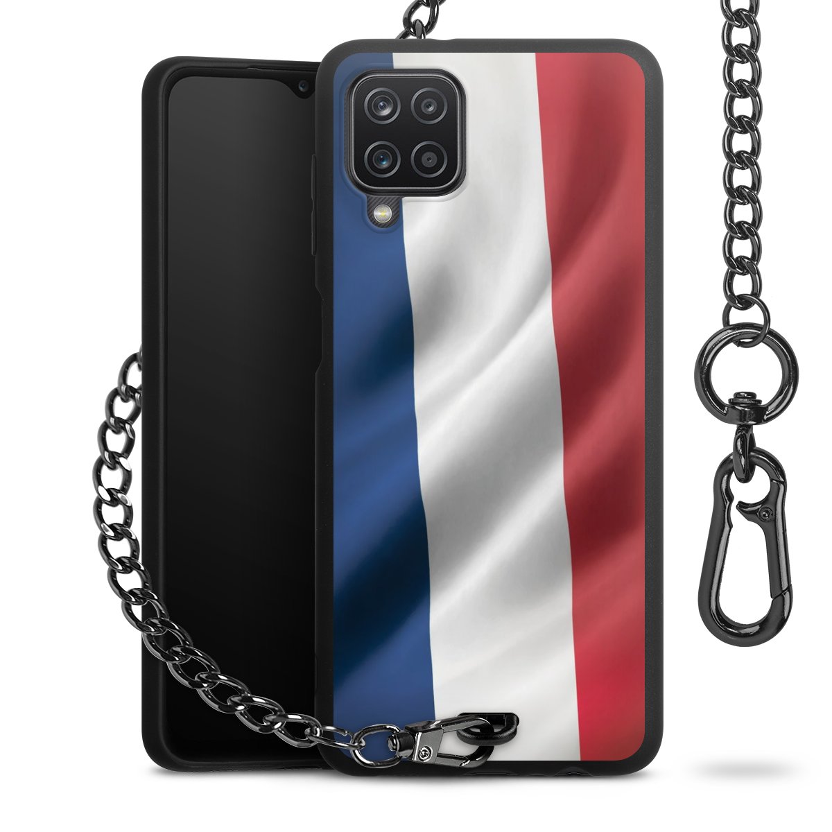 Die mattschwarze Silikon-Handyhülle besteht aus robustem TPU (thermoplastisches Polyurethan). Sie ist flexibel und schützt Dein Smartphone vor Stößen und Kratzern. Die Kette sowie der Karabinerhaken sind aus Metall in Gunmetal-Optik gefertigt. Für dieses Produkt kommen ausschließlich TÜV-geprüfte Materialien zum Einsatz.