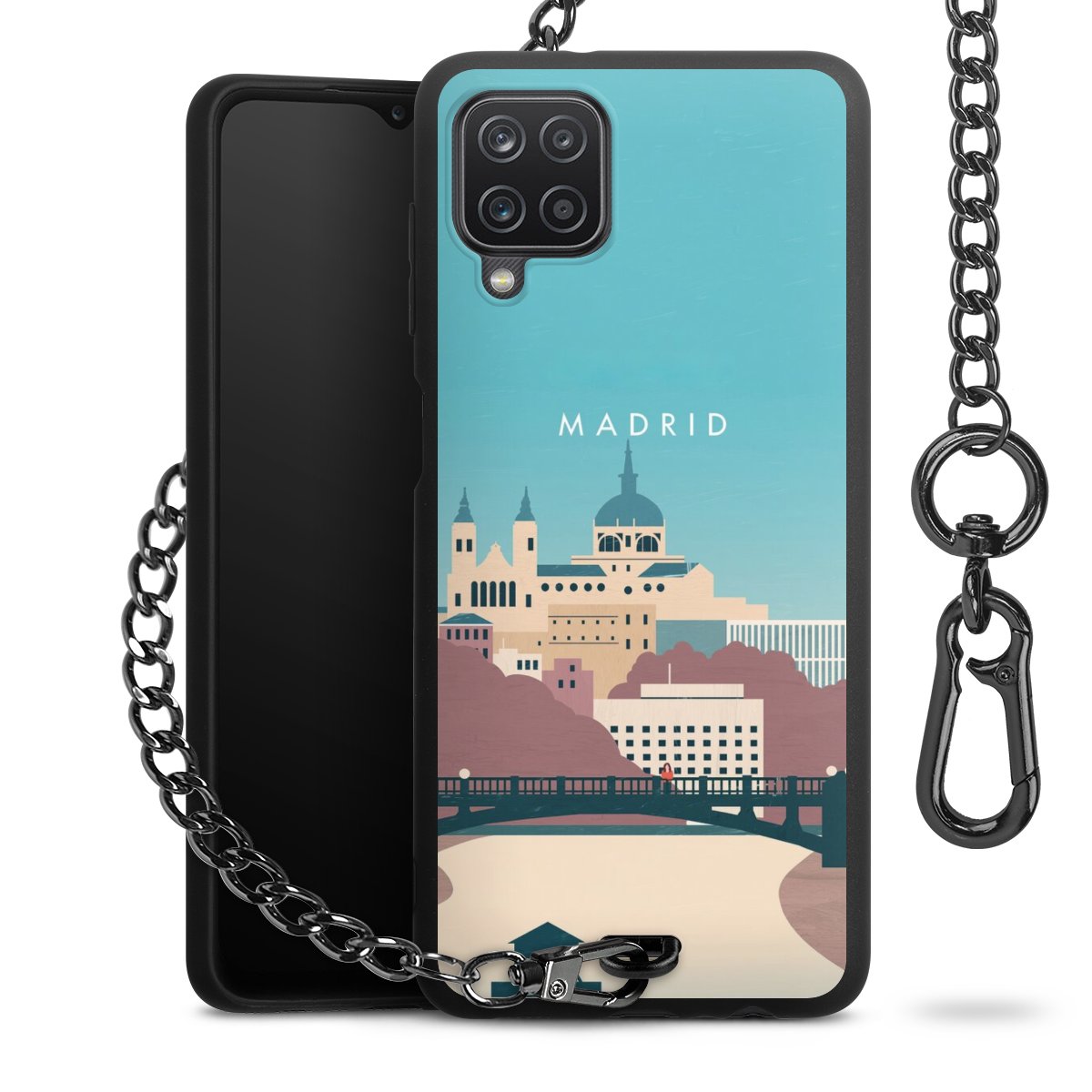 Die mattschwarze Silikon-Handyhülle besteht aus robustem TPU (thermoplastisches Polyurethan). Sie ist flexibel und schützt Dein Smartphone vor Stößen und Kratzern. Die Kette sowie der Karabinerhaken sind aus Metall in Gunmetal-Optik gefertigt. Für dieses Produkt kommen ausschließlich TÜV-geprüfte Materialien zum Einsatz.
