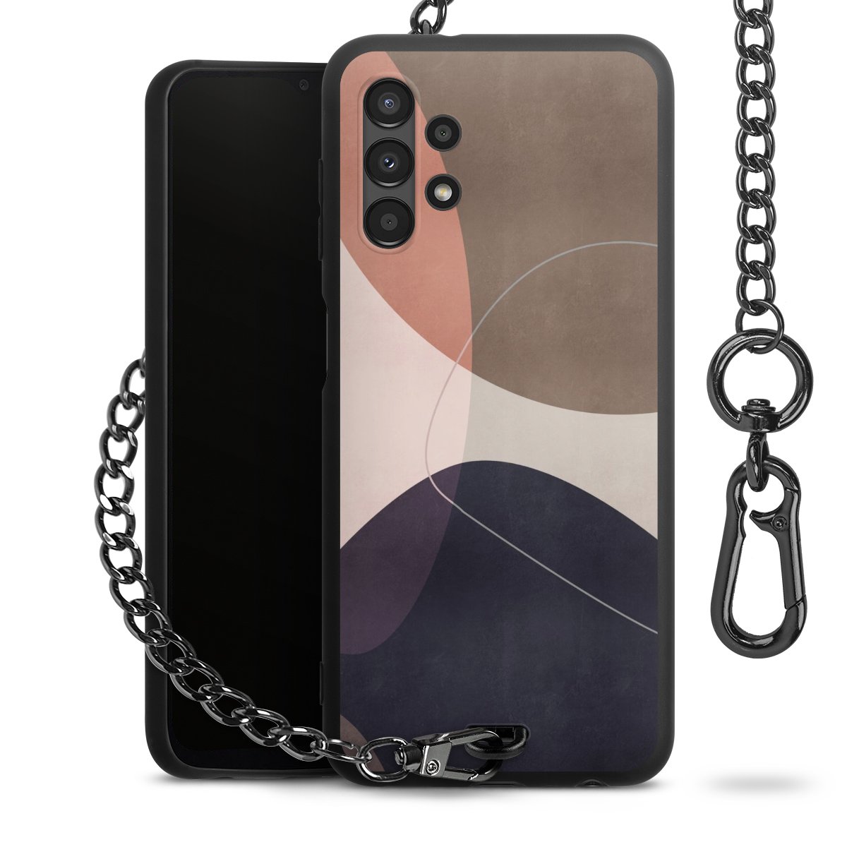 • Mattschwarze Handyhülle mit Metallkette