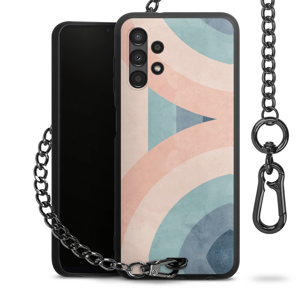 • Mattschwarze Handyhülle mit Metallkette