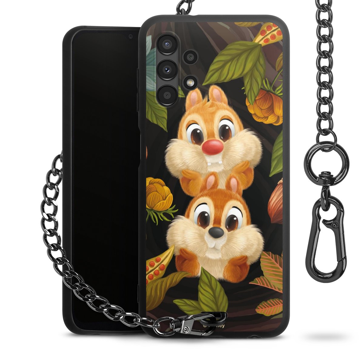 • Mattschwarze Handyhülle mit Metallkette