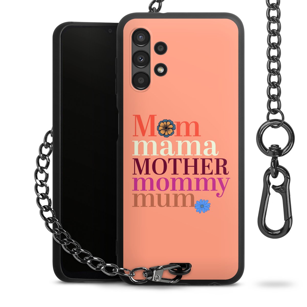 • Mattschwarze Handyhülle mit Metallkette