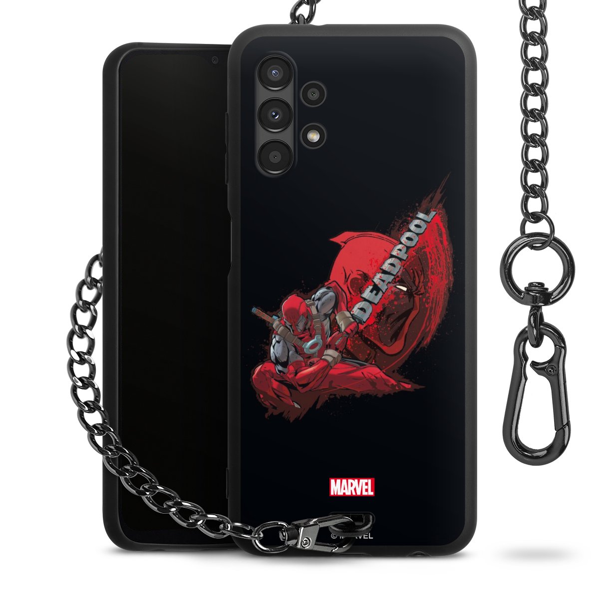 Die mattschwarze Silikon-Handyhülle besteht aus robustem TPU (thermoplastisches Polyurethan). Sie ist flexibel und schützt Dein Smartphone vor Stößen und Kratzern. Die Kette sowie der Karabinerhaken sind aus Metall in Gunmetal-Optik gefertigt. Für dieses Produkt kommen ausschließlich TÜV-geprüfte Materialien zum Einsatz.