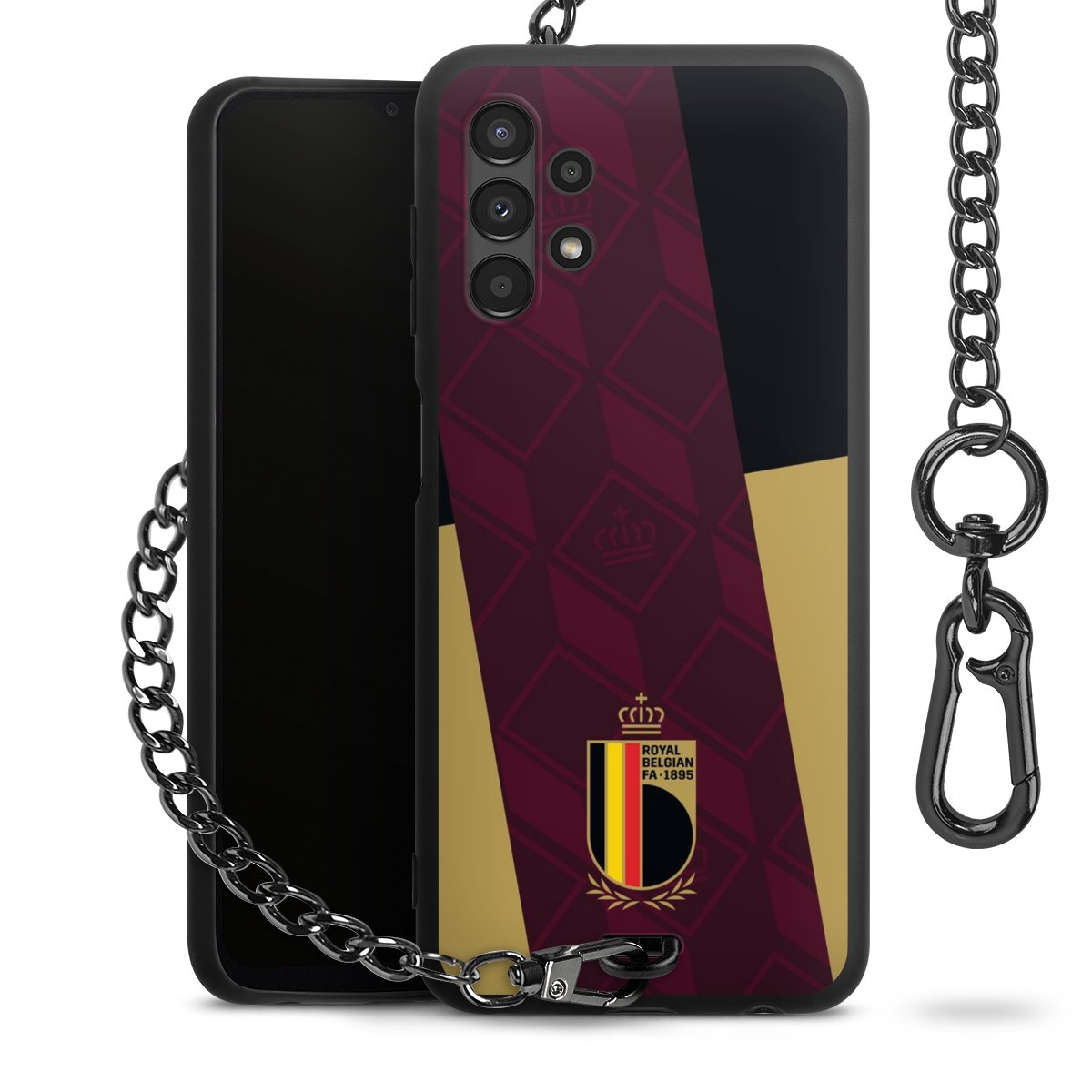 Die mattschwarze Silikon-Handyhülle besteht aus robustem TPU (thermoplastisches Polyurethan). Sie ist flexibel und schützt Dein Smartphone vor Stößen und Kratzern. Die Kette sowie der Karabinerhaken sind aus Metall in Gunmetal-Optik gefertigt. Für dieses Produkt kommen ausschließlich TÜV-geprüfte Materialien zum Einsatz.