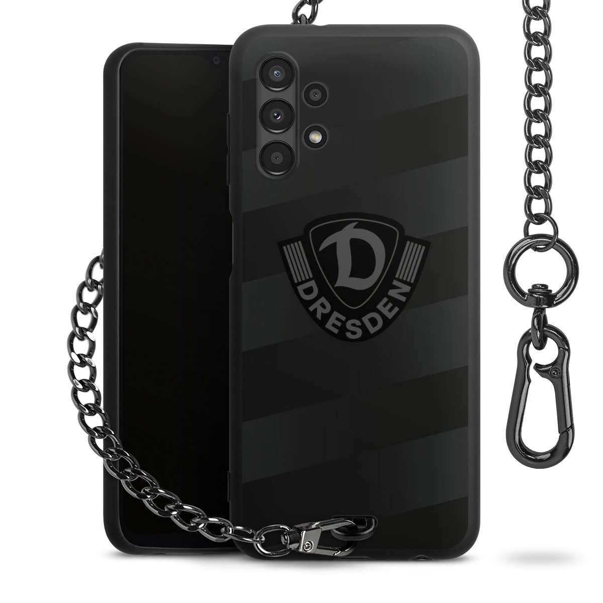 • Mattschwarze Handyhülle mit Metallkette