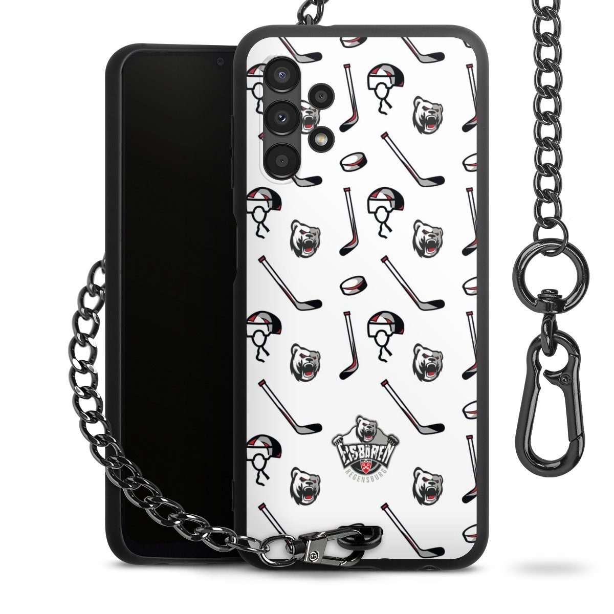 - Mattschwarze Handyhülle mit Metallkette