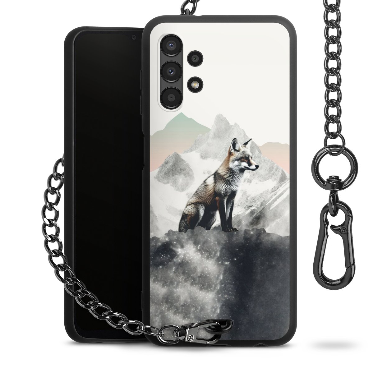 • Mattschwarze Handyhülle mit Metallkette