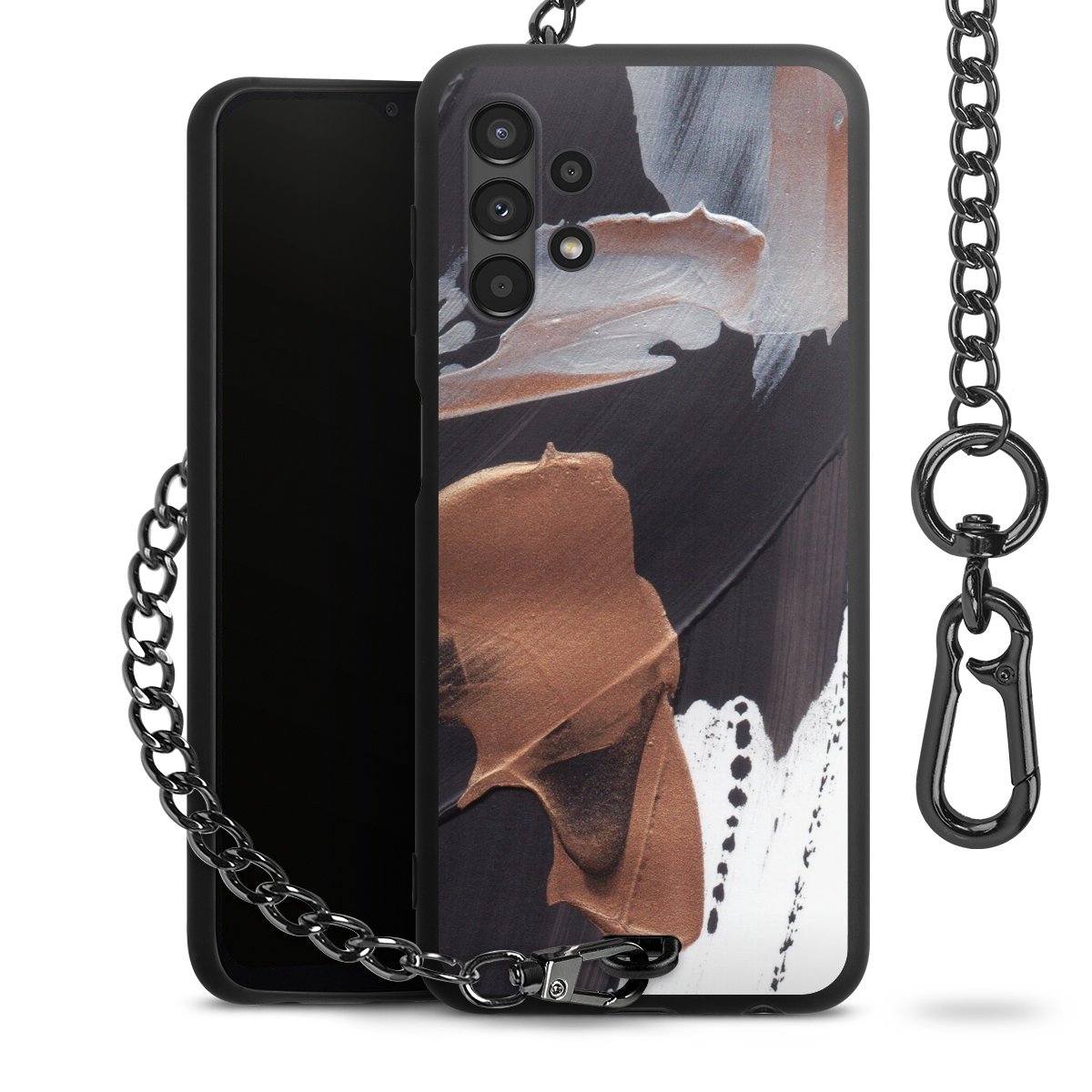 • Mattschwarze Handyhülle mit Metallkette