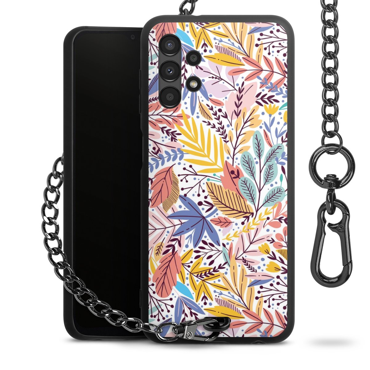 • Mattschwarze Handyhülle mit Metallkette