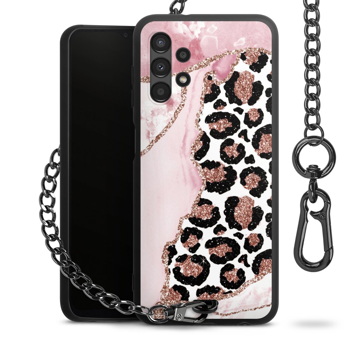 • Mattschwarze Handyhülle mit Metallkette