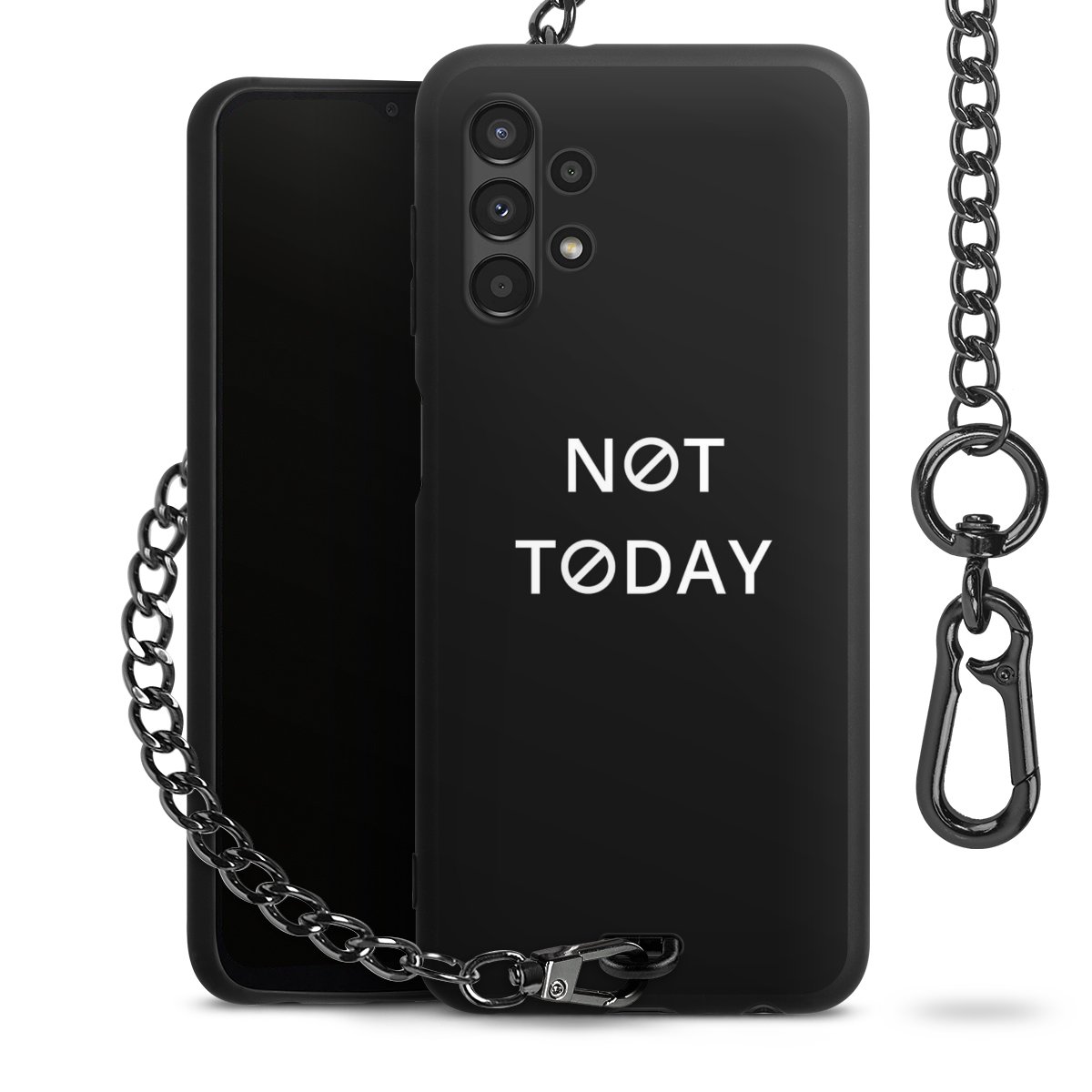 - Mattschwarze Handyhülle mit Metallkette