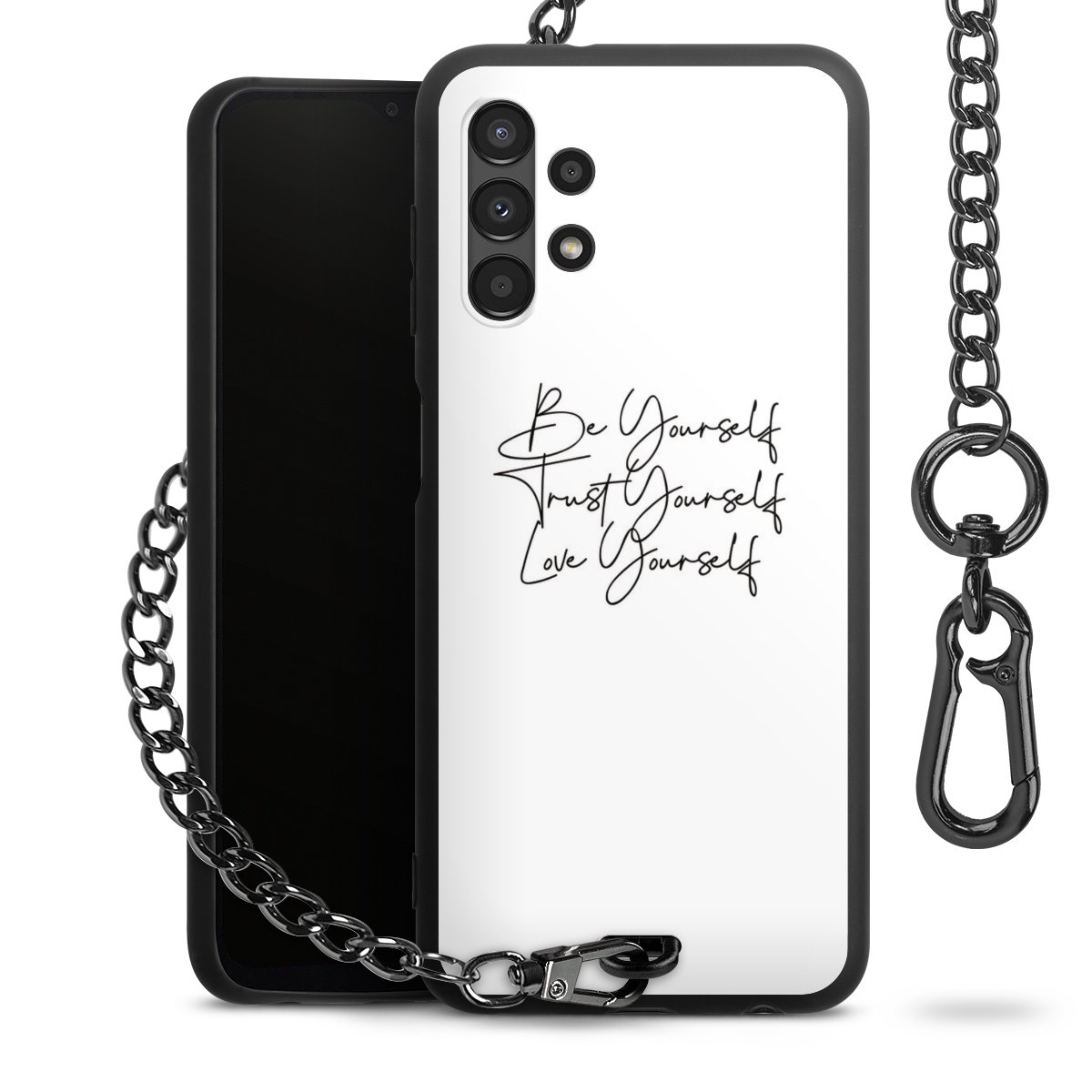 • Mattschwarze Handyhülle mit Metallkette