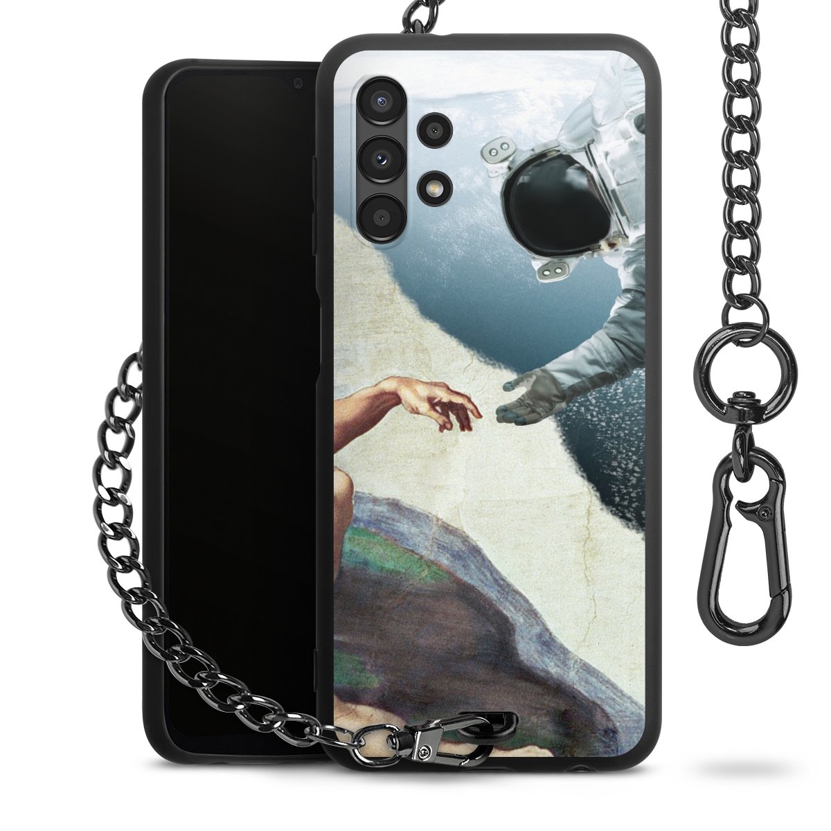 - Mattschwarze Handyhülle mit Metallkette