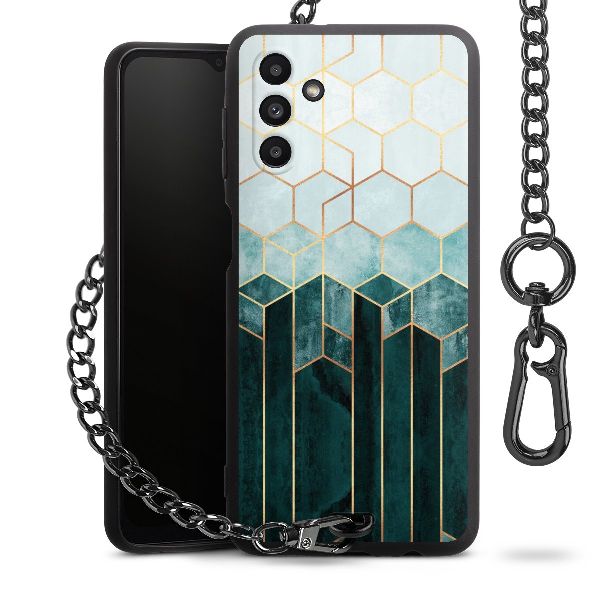 • Mattschwarze Handyhülle mit Metallkette