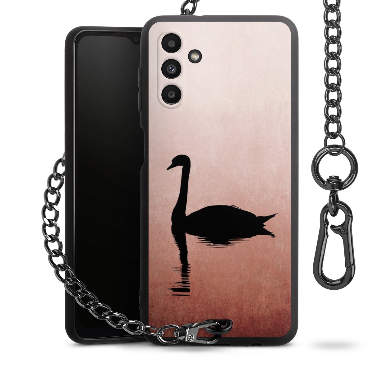 • Mattschwarze Handyhülle mit Metallkette