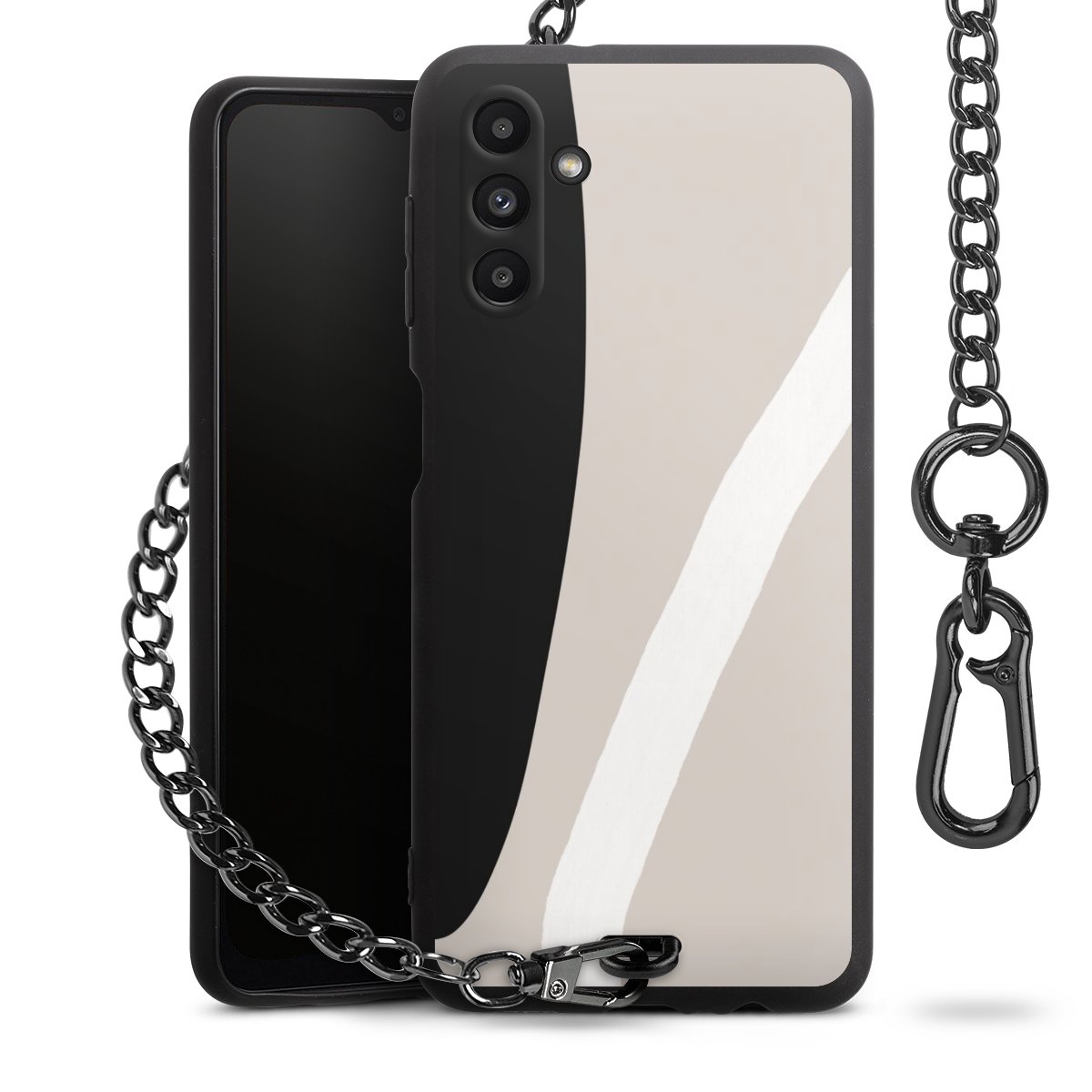 • Mattschwarze Handyhülle mit Metallkette