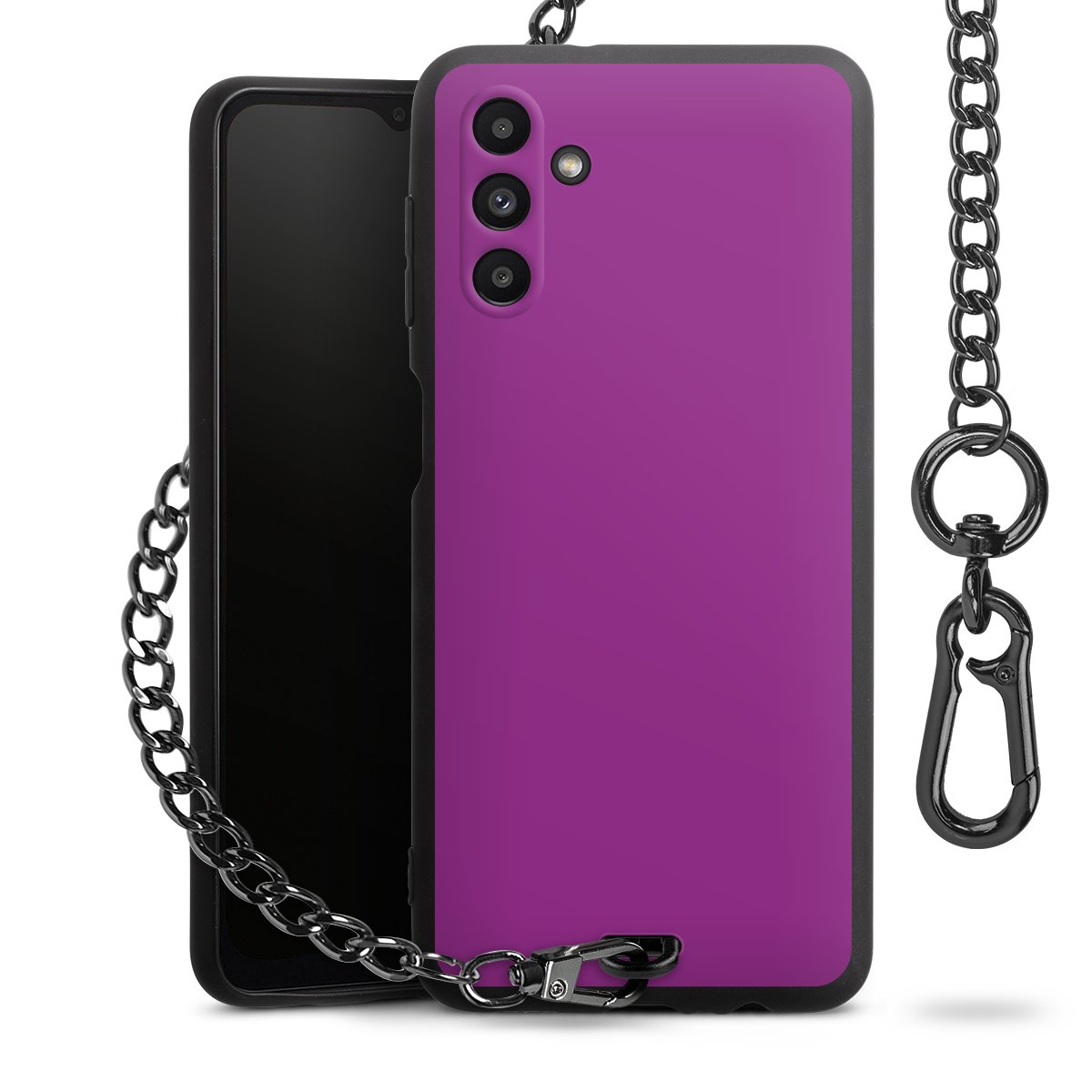 - Mattschwarze Handyhülle mit Metallkette