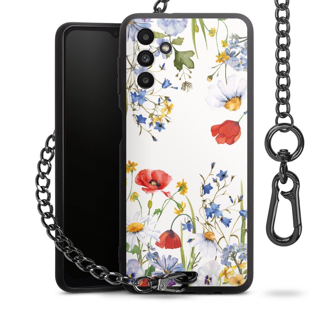 • Mattschwarze Handyhülle mit Metallkette