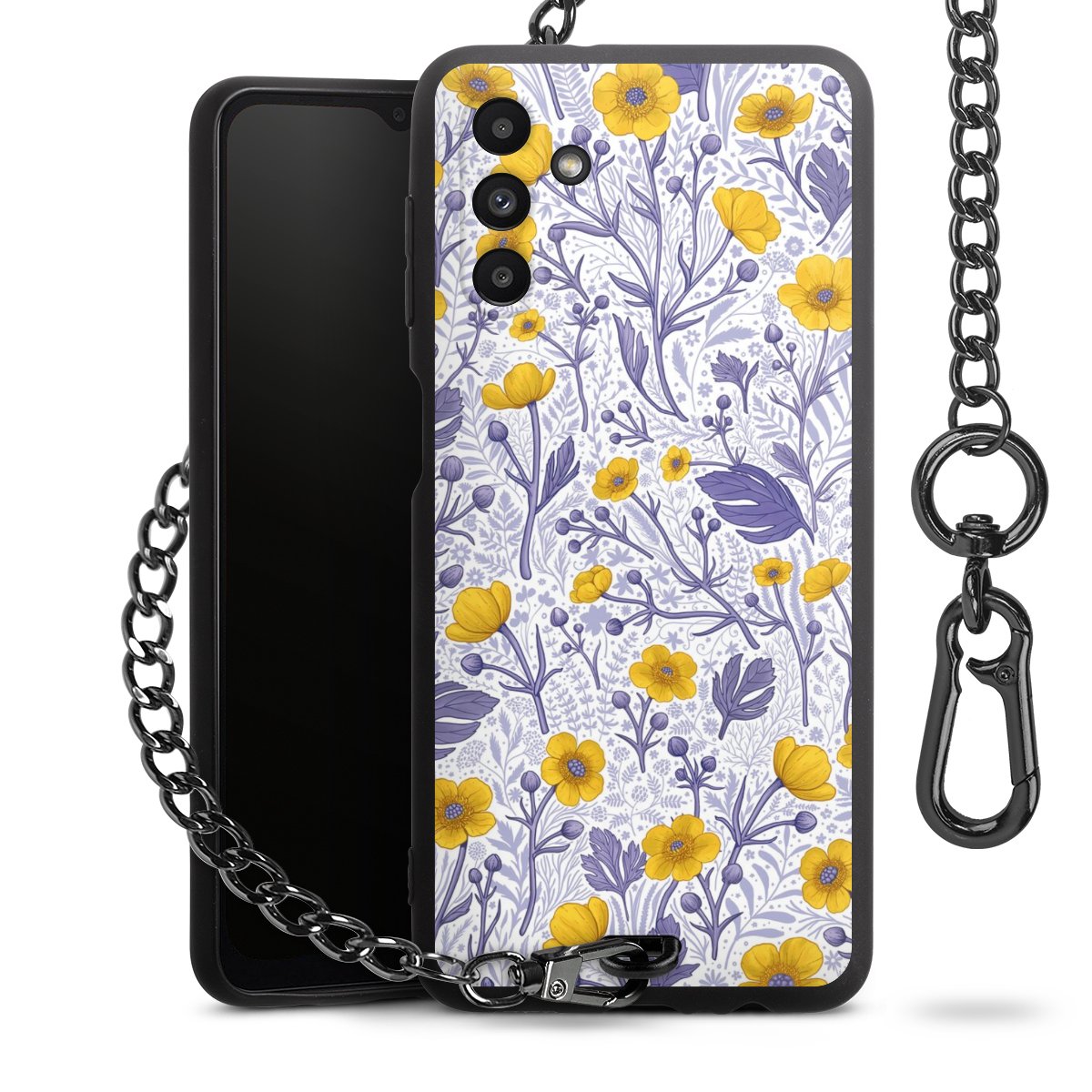• Mattschwarze Handyhülle mit Metallkette