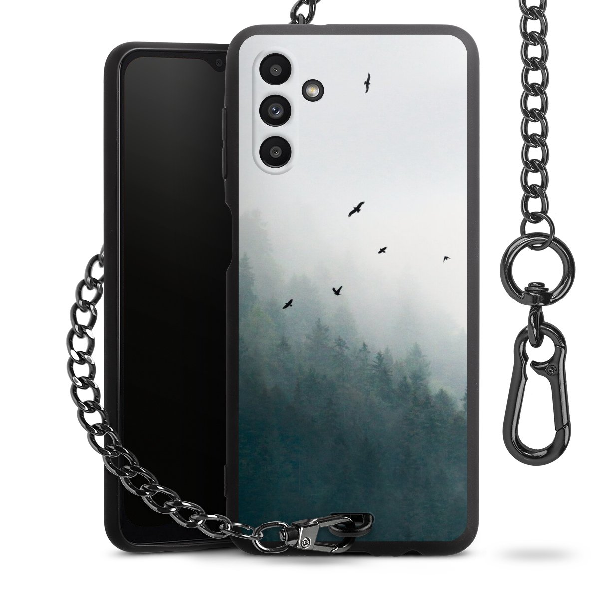 • Mattschwarze Handyhülle mit Metallkette