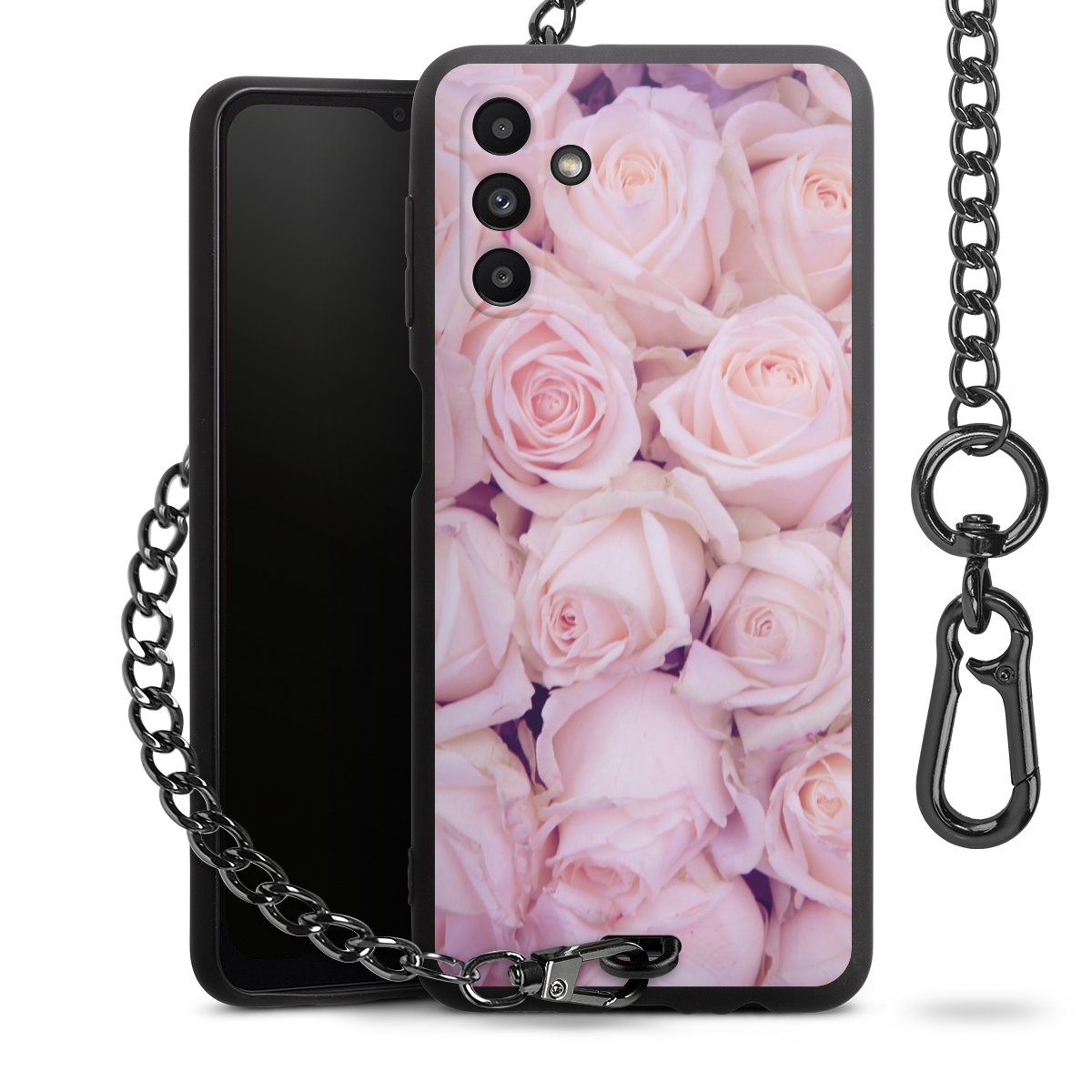 - Mattschwarze Handyhülle mit Metallkette