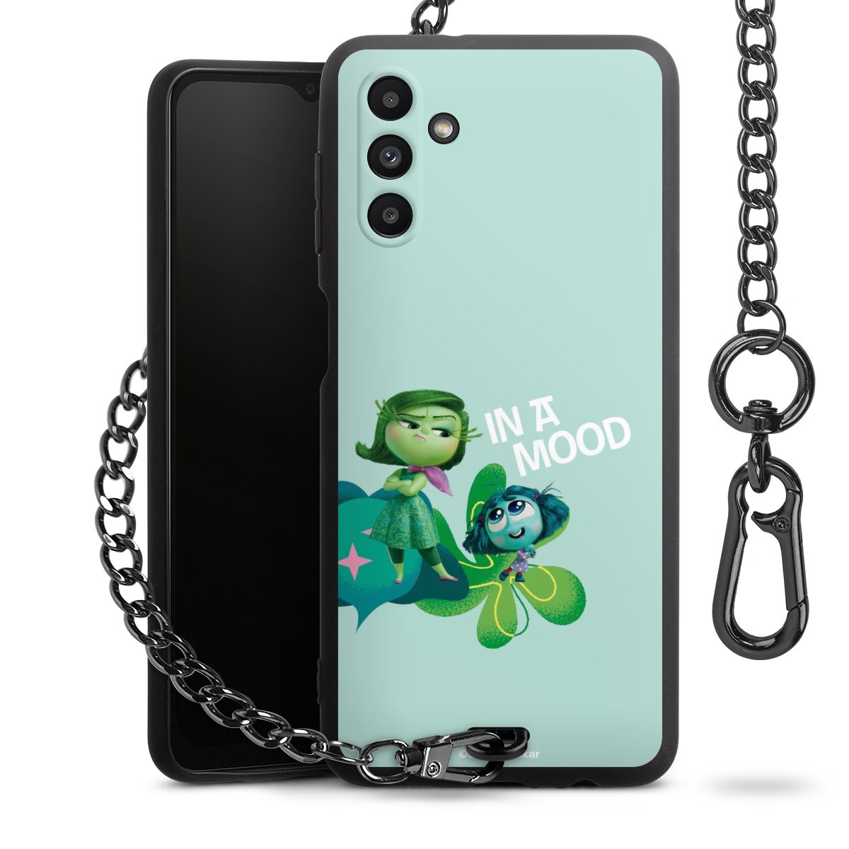 - Mattschwarze Handyhülle mit Metallkette