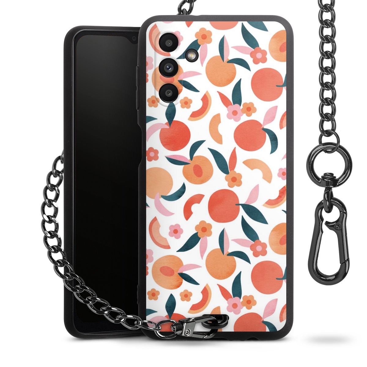 • Mattschwarze Handyhülle mit Metallkette