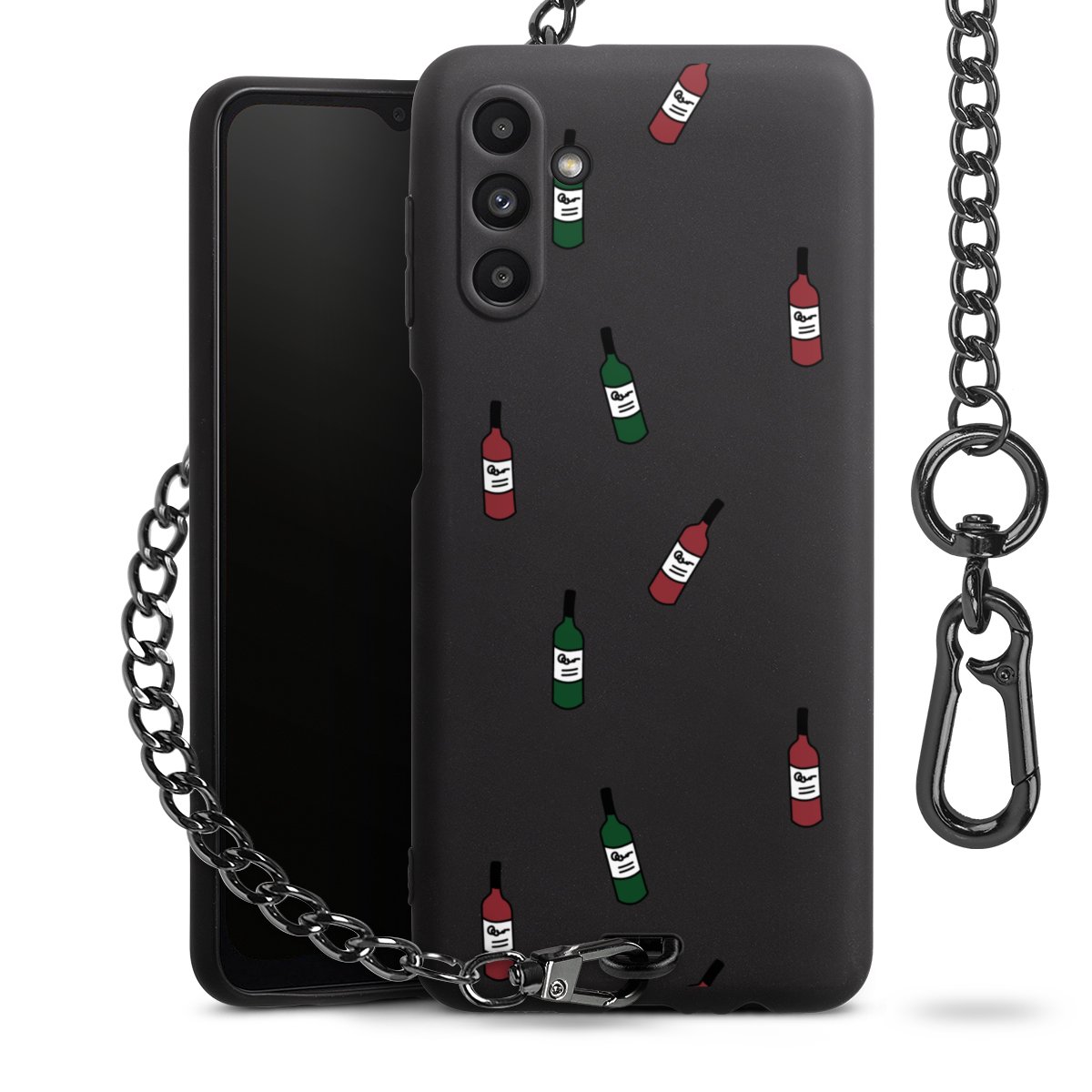 • Mattschwarze Handyhülle mit Metallkette