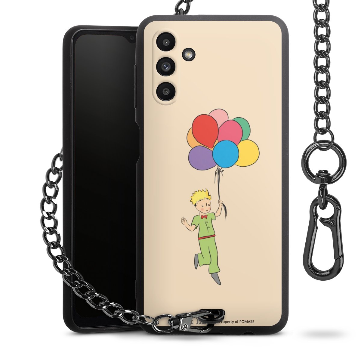 Die Handyhülle verfügt über eine mittig am unteren Rand platzierte Öse, an der die Metallkette stabil befestigt ist. Bestelle die Hülle einfach für Dein Smartphone-Modell, dann passt sie wie angegossen und Du brauchst sie bloß einmal anzudrücken. Handy in die Tasche, Karabiner an den Hosenbund – schon kann die Party starten.