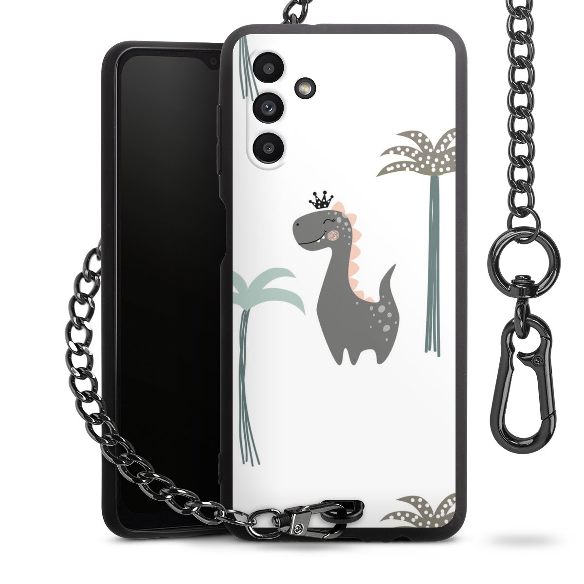 • Mattschwarze Handyhülle mit Metallkette