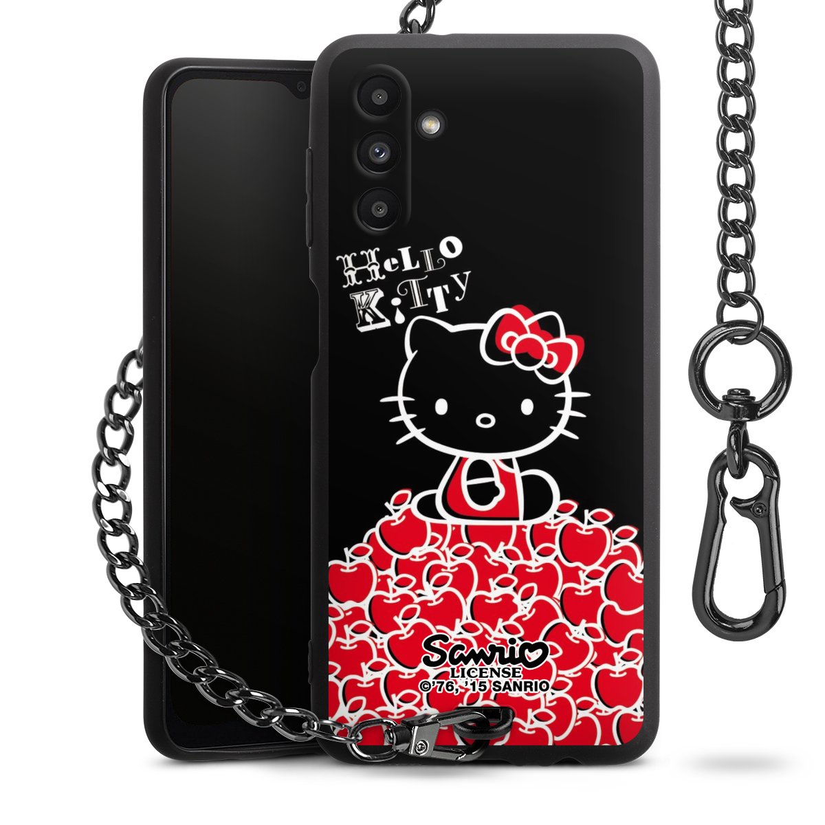 Die mattschwarze Silikon-Handyhülle besteht aus robustem TPU (thermoplastisches Polyurethan). Sie ist flexibel und schützt Dein Smartphone vor Stößen und Kratzern. Die Kette sowie der Karabinerhaken sind aus Metall in Gunmetal-Optik gefertigt. Für dieses Produkt kommen ausschließlich TÜV-geprüfte Materialien zum Einsatz.